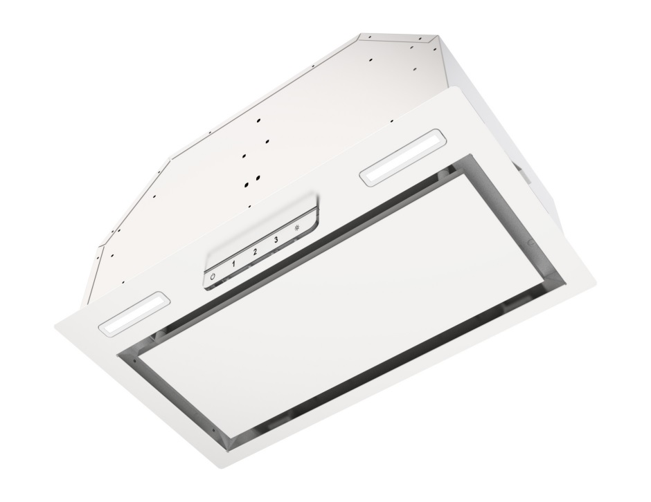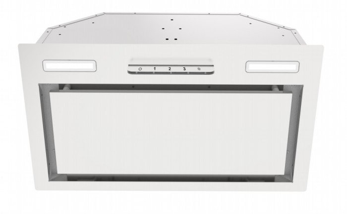 Вытяжка полностью встраиваемая, ширина 52 см (в шкаф 60 см), отвод, 1200 м3/час (турбированный мотор), фасад - нержвеющая сталь, Управление -стекляная панель с сенсорным управлением, 3 скорости, LED освещение (2*1,5 Вт),  диаметр воздуховода 150 мм