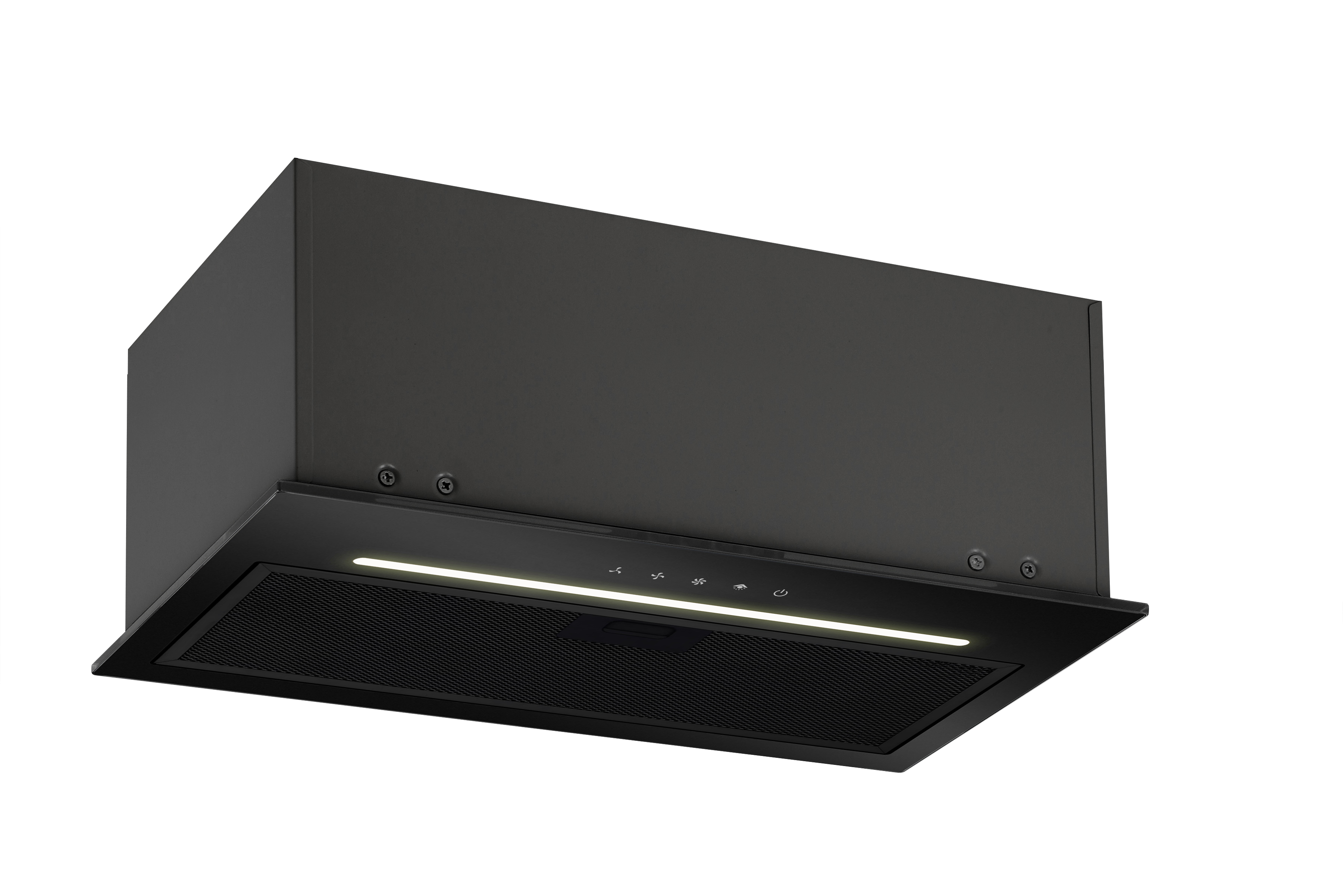 Вытяжка, полностью встраиваемая, ширина 45 см, отвод/рециркуляция, 750 м3/час, сенсорное управление, 3 скорости, LED освещение 1*4 Вт, алюминиевый жироулавливающий фильтр черного цвета. Цвет панели - черное стекло (Угольные фильтра покупаются ОТДЕЛЬНО -FILTRU DE CARBON  BACKER (0076))
