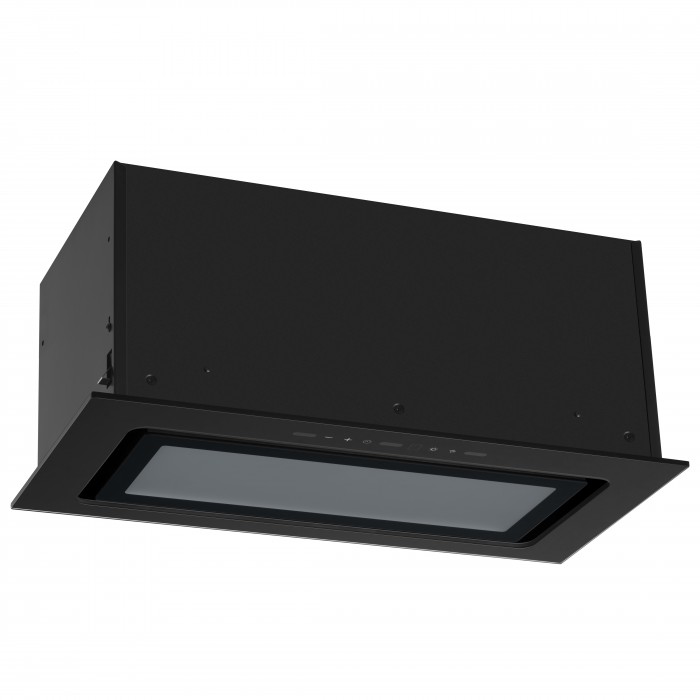 Вытяжка полностью встраиваемая, ширина 60 см, отвод / рециркуляция (фильтра приобретаются отдельно), 1200 м3/час (турбированный мотор),черное стекло; Управление жестами + сенсорное, 3 скорости, встроенная LED-панель с равномерной подсветкой 1*8 Вт , диаметр воздуховода 150 мм